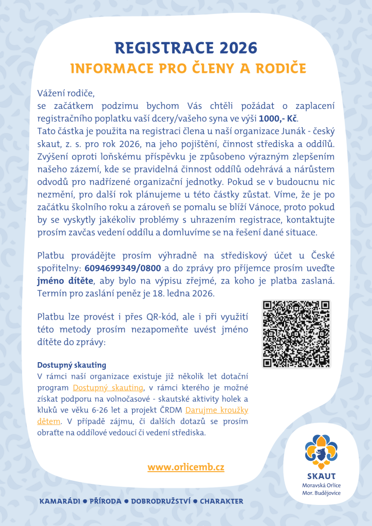 Vážení přátelé a podporovatelé skautského střediska Moravská Orlice,
